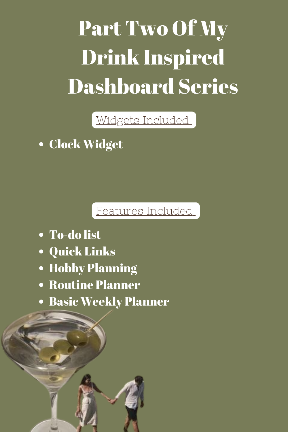 Welcome to part 2 of my drink inspired series and this time we have a classic drink with an old money feel, the Martini. To embody this drink, I kept the design minimal and organized with hints of green to represent the most important part of the Martini, the olive :)